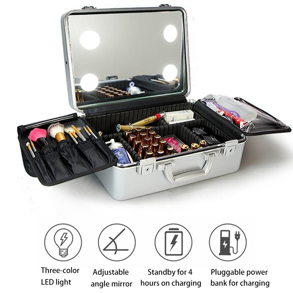 Professional Makeup Box For Makeup Artists Portable Cosmetic Storage Box With Led Light Suitable For Travel Portable Hanging Luggage Hanging Rod Colour Silver Size 40 X 29 X 16 Cm Amazon De Beauty